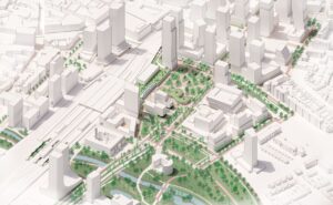 Tijdens Dutch Design Week 2025, presenteert KCAP een reeks mogelijke toekomstige visies voor het stationsgebied aan de noordzijde van Eindhoven Centraal. Deze ontwerpen zijn gebaseerd op het voorkeursalternatief uit de MIRT-verkenning Multimodaal Knoopunt Eindhoven en bieden een inspirerend beeld hoe het station en de directe omgeving zich de komende jaren zou kunnen ontwikkelen. De tentoonstelling is te zien in de historische stationshal aan de zuidzijde van Eindhoven Centraal, als onderdeel van de bredere tentoonstelling over de toekomst van het stationgebied.