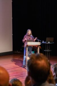 Architect en gastprogrammamaker Violette Schönberger aan het woord tijdens het ACE-diner in 2023