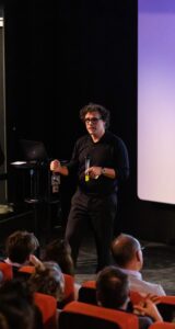 Architect en gastprogrammamaker Eric Frijters tijdens de presentatie van SUM in Natlab, 2023